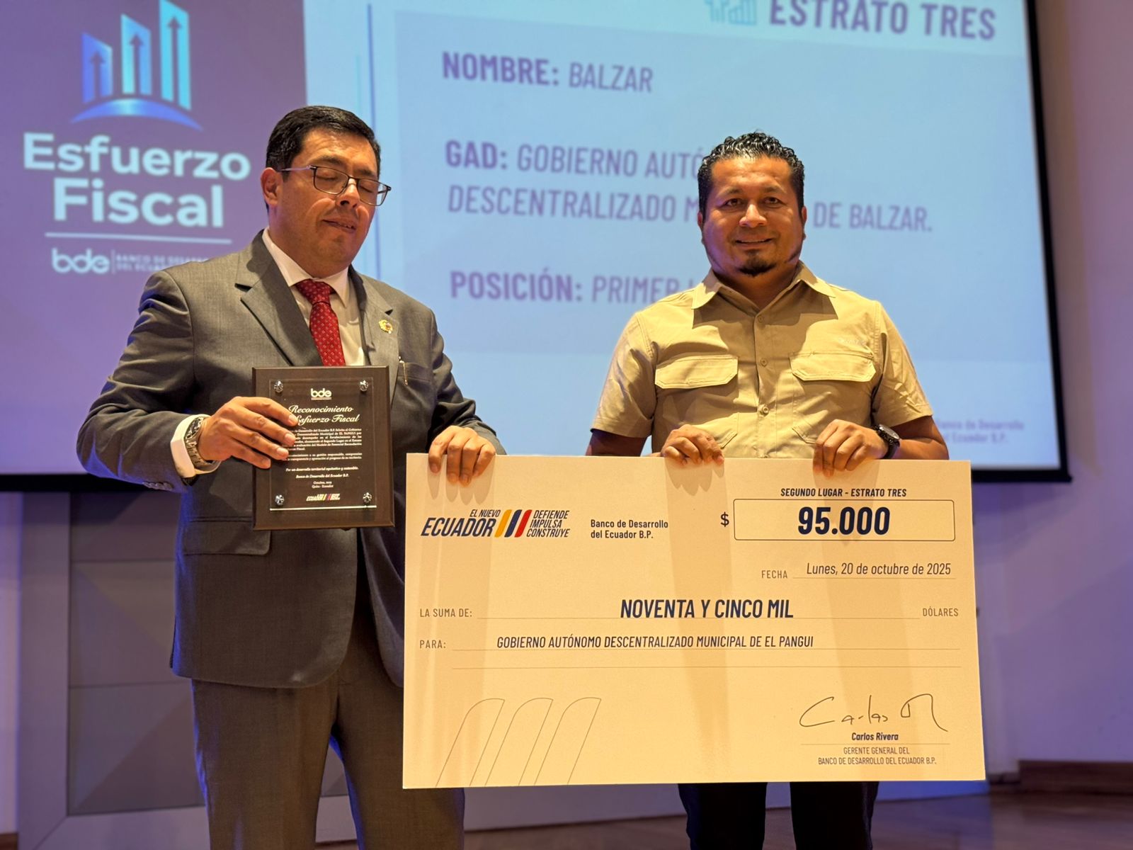 En el marco de este galardón se entregó un incentivo de 95 mil dólares al ayuntamiento para la ejecución de proyectos y obras. En la ceremonia participó el alcalde Jairo Herrera quien recibió el premio de manos de Carlos Rivera Bautista, gerente General del Banco de Desarrollo del Ecuador.