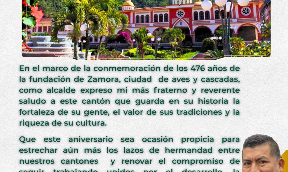 Wuilman Rodríguez ex candidato a la alcaldía del cantón Zamora saluda a Zamora por sus fiestas de los 476 años de fundación además manifiestas que desde...