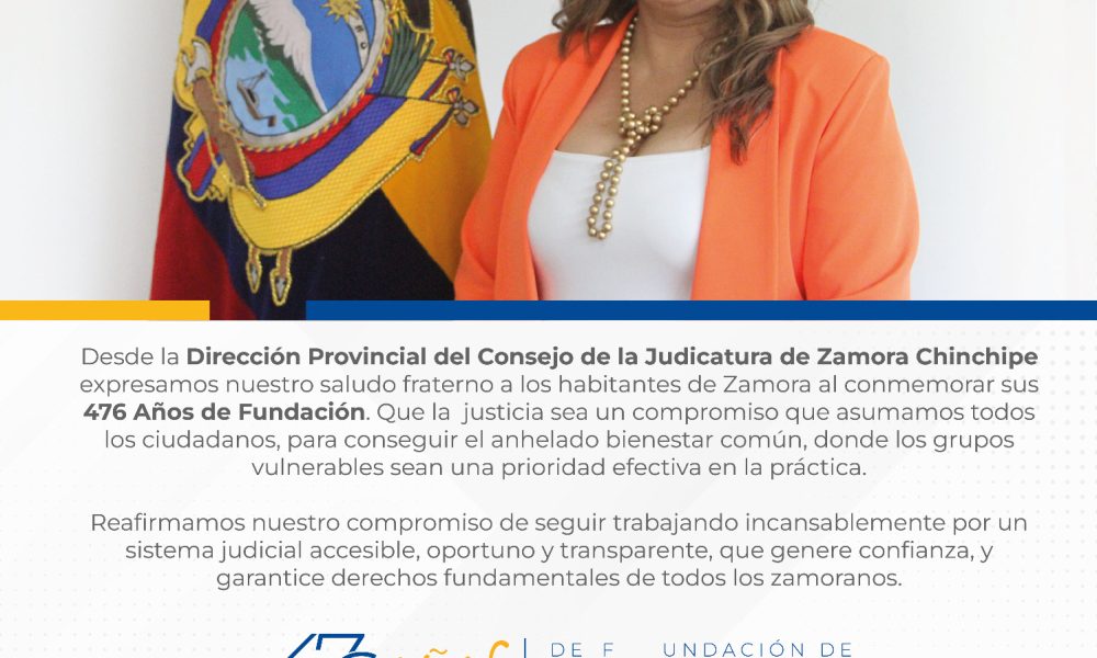 Al cumplir los 476 años de Fundación del cantón Zamora, la Prefectura de Zamora Chinchipe representada por la prefecta Karla Reátegui rinde justo homenaje a la...