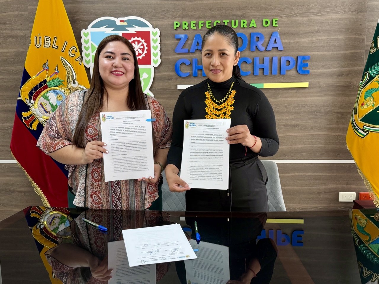 La prefecta Karla Reátegui, junto a la directora provincial del IESS, Susana Ochoa, sellaron este acuerdo.