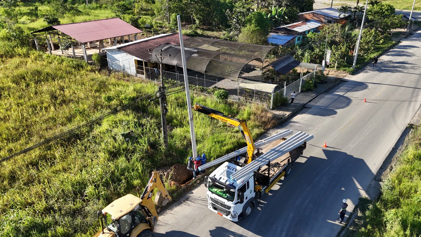Izabone Castillo, fiscalizadora de la obra, explica que el proyecto contempla la colocación de 135 nuevos postes y la instalación de 7.086 metros lineales de redes de baja y media tensión, con un plazo de ejecución de 90 días. Estas características permitirán optimizar el servicio y ampliar la cobertura de alumbrado en zonas prioritarias del cantón.