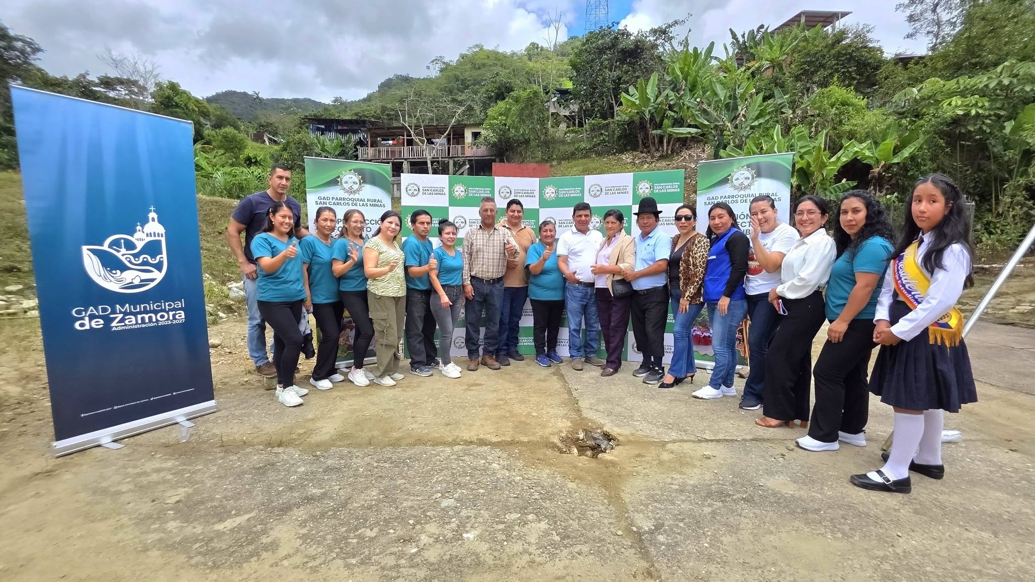 Con el firme compromiso de fortalecer la infraestructura educativa en el sector rural, el Municipio de Zamora, en coordinación con el GAD Parroquial de San Carlos de las Minas, realizó la colocación de la primera piedra para la construcción de una cubierta metálica en la Escuela Víctor Manuel Peña Herrera.