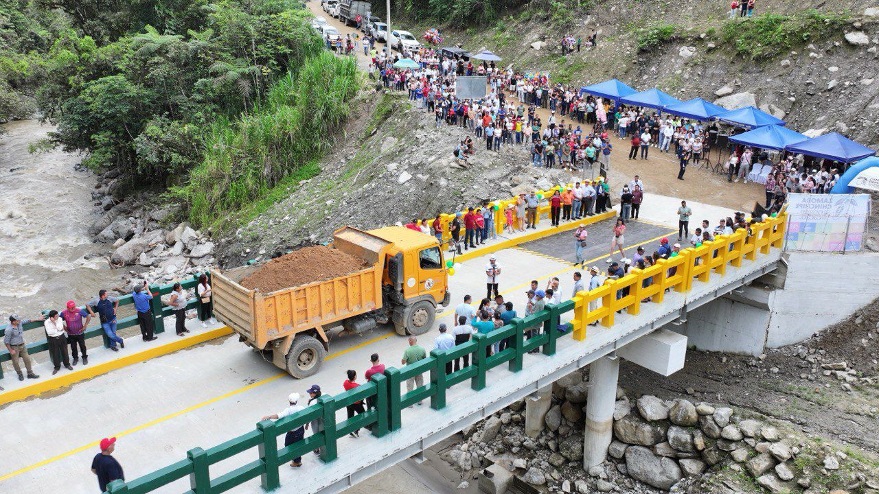 la construcción del puente vehicular sobre el río Palanda paso a San Francisco del Vergel – La Canela y le reapertura del Coliseo “Ciudad de Palanda”, espacios que impulsan el bienestar, la integración y el progreso de la ciudadanía. El puente vehicular doble carril tiene una capacidad de 48 toneladas de soporte y posee una inversión total de USD 502.840,32.