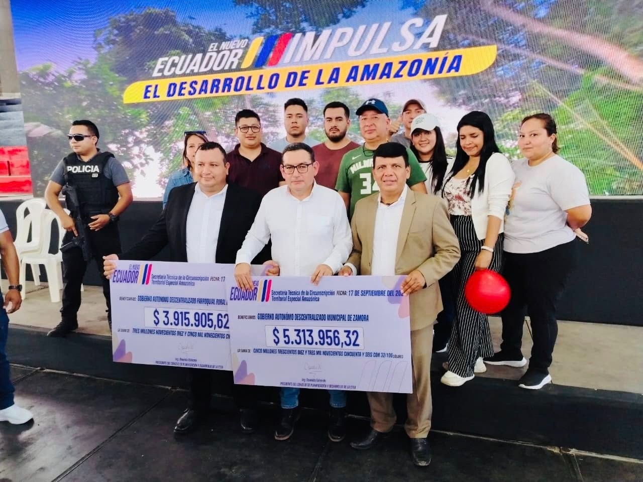 Este miércoles 17 de septiembre, en la ciudad del Tena, el alcalde del cantón Zamora, Manuel González recibió oficialmente, de manos de la Secretaría Técnica de la Circunscripción Territorial Especial Amazónica (ST-CTEA), el cheque de $5.313.956,32 dólares americanos para hacer realidad el proyecto denominado, “Construcción del sistema de conectividad vial Víctor Reyes Cárdenas en la parroquia y cantón Zamora, provincia de Zamora Chinchipe”.